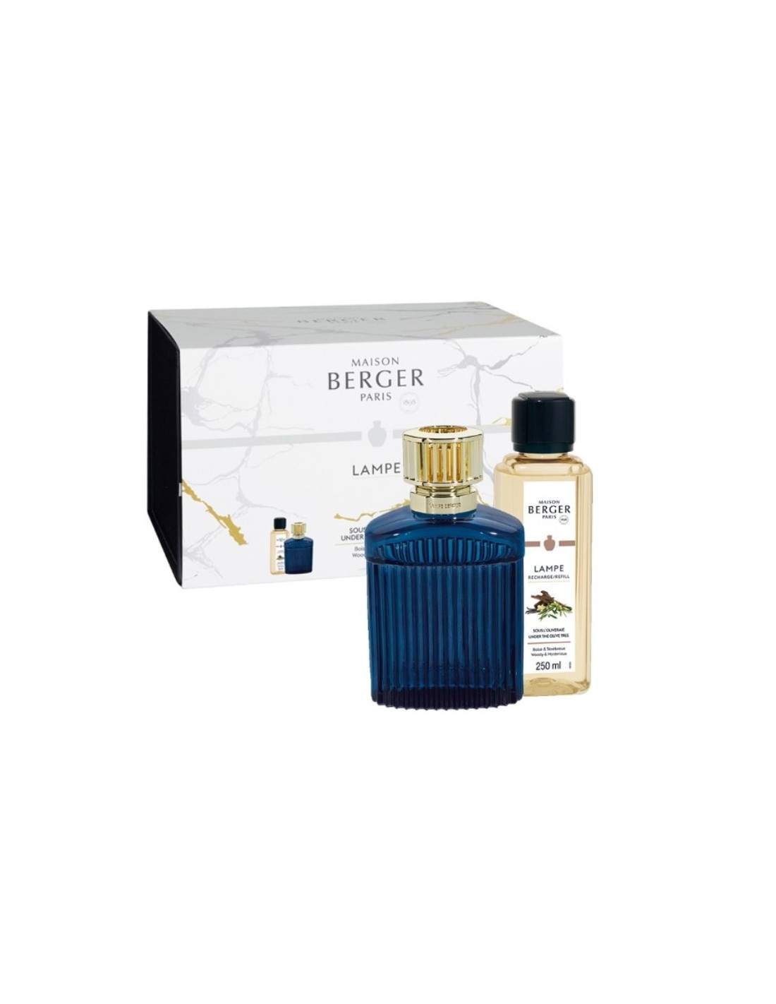 All'interno del set troverai anche la ricarica per lampada catalitica nella profumazione Sous L'Oliveraie/Under the olive tree.